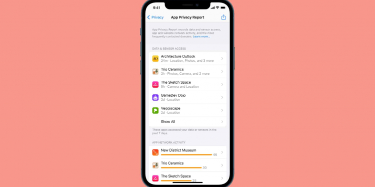 Enter Settings > Privacy, scroll down to the bottom and tap App Privacy Report. Turn On App Privacy Report, if asked. This screen will now show whenever any apps use your personal data.